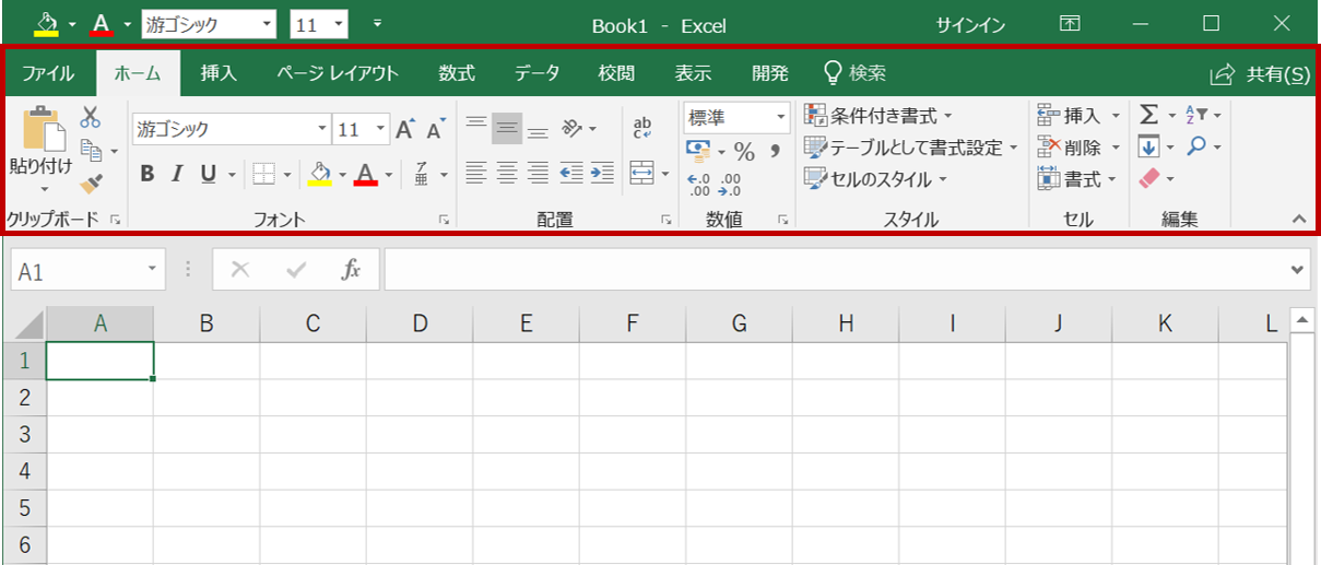 ちなみに「ホーム」タブを開きたかったのに、間違えて別のタブを開いてしまった時は、Escキーを押せば、ひとつ前の状態に戻ります。