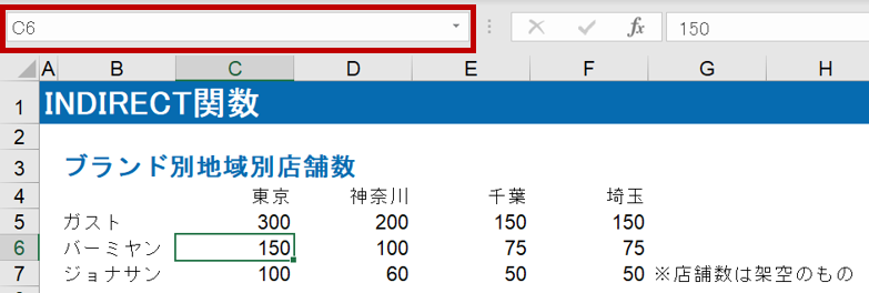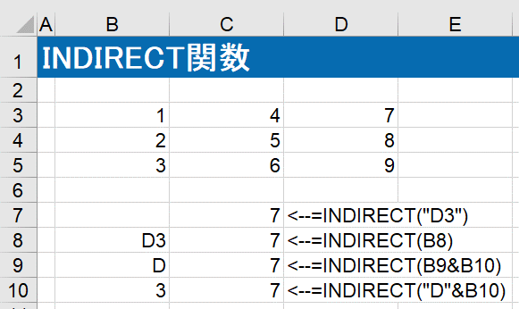 INDIRECT関数は指定される文字列への参照を返す関数です。