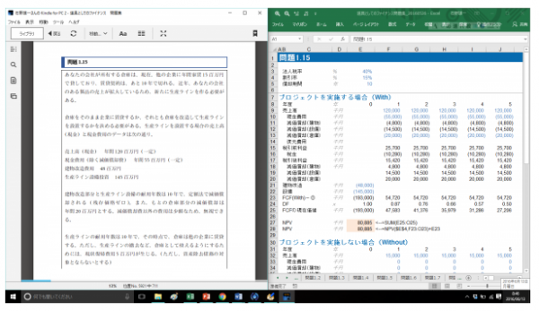 最後にぜひともお薦めしたいのは、次のショートカットキーです。何かのウィンドウが開いている場合、「Windowsキー + 左矢印キー」、あるいは「Windowsキー + 右矢印キー」を押すとウィンドウが画面の左右の端にぴったり移動します。