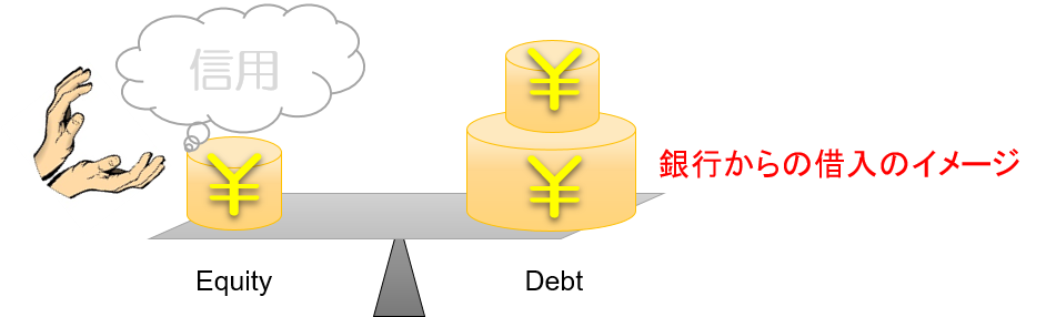 そして、他人様に信用が認められ、それを使える力がついてくると、下図のようなイメージで資金を調達できるようになるのでしょう。