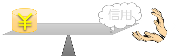 金融関係の言葉を見渡しても、信用枠・信用貸し・信用証券・信用情報など信用を冠とする表現は多いです。つまり、金と信用は釣り合っていて、シーソーの関係にあるということです。ただ、ここで問題なのは、信用には色も形もないので、漠として掴みどころがない性質を持っているということです。見えないので、とてもタチが悪いのです。