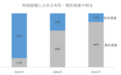 特許権やソフトウェアなどの無形資産の重要性が高まっています。2019年9月17日付日経新聞によれば、米国S&P500社の時価総額のうち、無形資産が生んだ価値の比率は40年間で17%から84%に増加していると言います。富の源泉は、機械や不動産などの有形資産から知識やデータなどの無形資産へと変化しているのです。