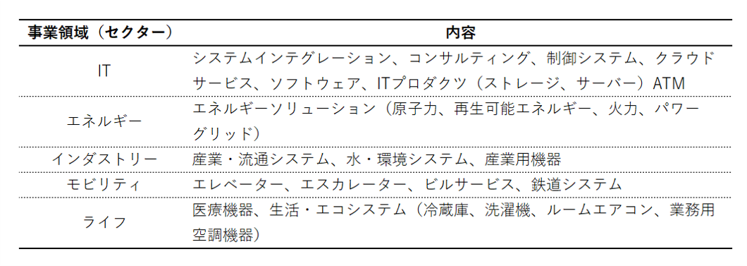 日立はリーマン・ショック後の2009年3月期に当時、製造業として過去最大の7,873億円の連結最終赤字を計上しています。まさに、生き残りをかけて事業構造の転換を進めてきたわけです。現在の日立の事業領域は、IT、エネルギー、インダストリー、モビリティ、ライフの5つです。事業の内容は次の通りです。