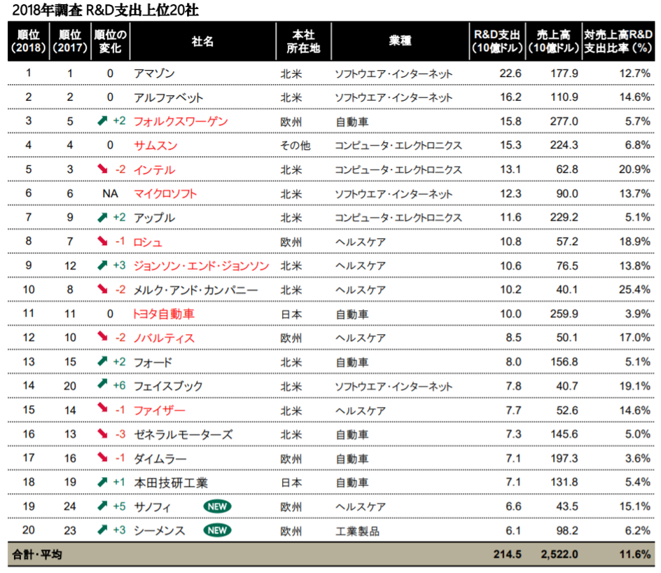 出所:Strategy& 2018年グローバル・イノベーション1000調査結果概要
