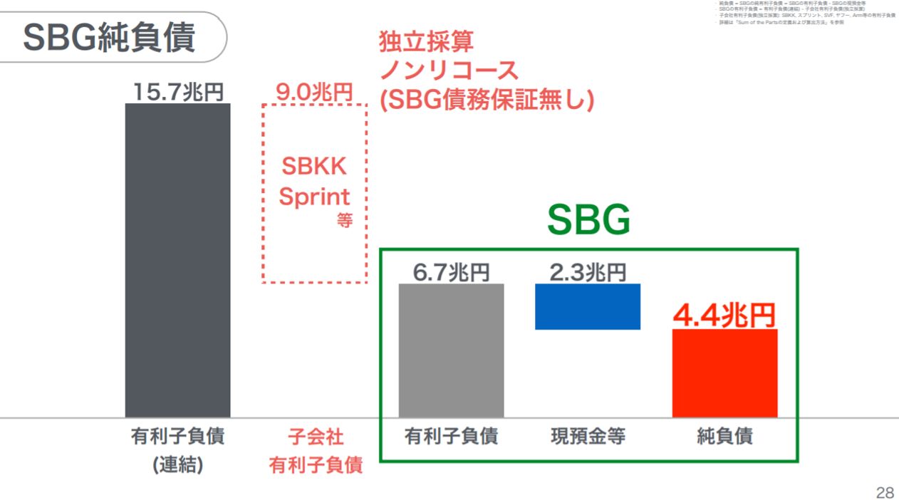 「ソフトバンクやスプリントなどの上場子会社は独立採算で経営を行っている。また、それぞれの子会社の有利子負債はSBGの債務保証が入っていない。だから何かあっても返済する必要がない。」