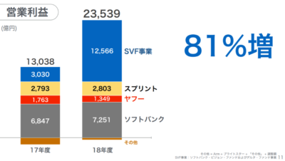 この増益には、ソフトバンク・ビジョン・ファンド(SVF)が大きく貢献しています。今期の営業利益の半分以上を稼いでいるのがSVFなのです。