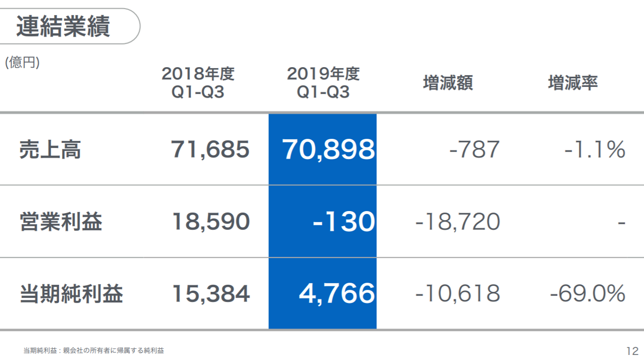ただ、3Qの連結営業利益が黒字化したものの、以下の図の通り、これまでの連結営業利益累計では▲130億円と前期の同期間の1兆8,590億円と比較すれば、いまだ予断を許さない状況であることがわかります。