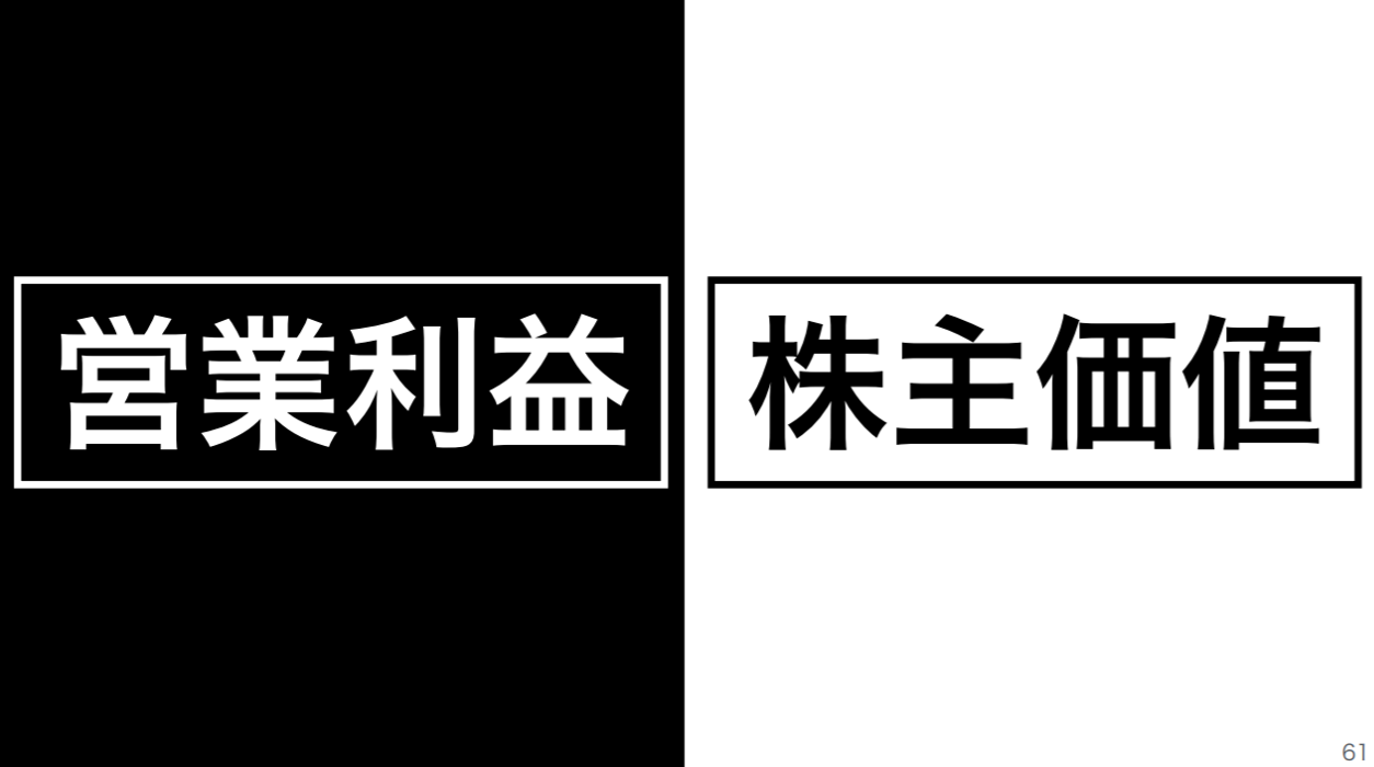そして、次にこのスライドです。「左から見ると営業利益、右から見ると株主価値です。一つの会社の成績を表すのに左からみるべきか、右からみるべきか。SBGの業績をみるのは右の株主価値でみるべきだと思います。」