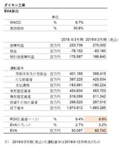 ということで、ざっくりダイキン工業のEVAを算出してみました。そうすると、きっちりEVAプラスなのです。それも2019年3月期のEVAは約600億円と前年対比でいえば、増加する見込みです。