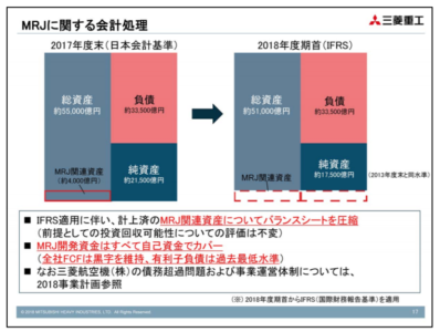 ところが、MRJの関連資産約4000億円が損失を計上することなしにバランスシートから消えることになったのです。これについて三菱重工は、決算説明会で以下のように説明しています。