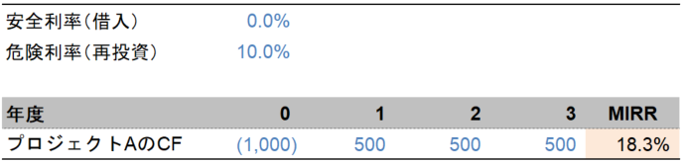 通常のIRR23.4%の横に修正IRR18.3%を併記しておくことがマネジメントの意思決定には役立つのではないでしょうか。