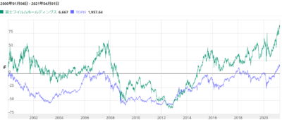 日経新聞によれば、古森氏は「会社がかなり強くなり、私がやるべきことが終わった」と構造改革の成果を強調しました。2021年3月期の連結当期純利益(米国会計基準)は1600億円と新型コロナウイルス下でも過去最高を見込みます。確かに、こうした富士フィルムの業績を反映してか、足元の株価はTOPIXを大きく上回っている状況です。果たして、富士フィルムは本当に強くなったのでしょうか。