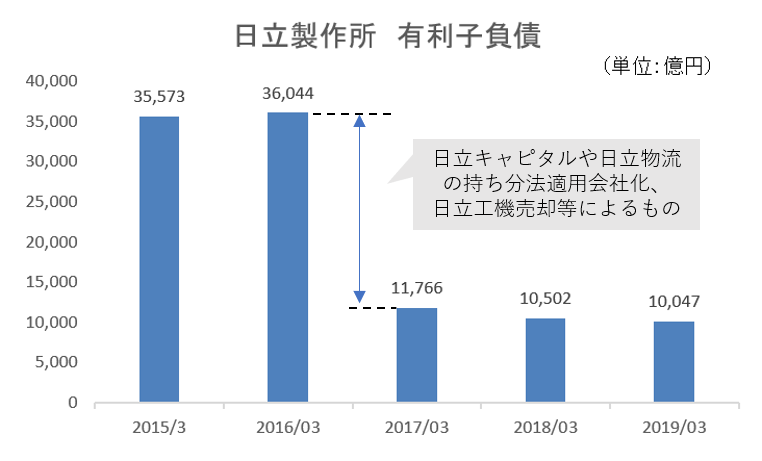 日立はコモディティー化する事業や低収益の事業から撤退するなど、2012年以降、事業の入れ替えを徹底的に行ってきました。投資を抑制し、2019年3月末で有利子負債は約1兆円と低い水準になっています。