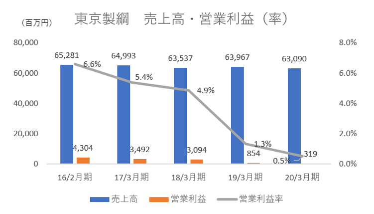 市場関係者を驚かせているのは、日本製鉄が東京製綱に事前相談もなく仕掛けたことです。日本製鉄と言えば、経団連の会長を何人も輩出したオールドエコノミーの代表格です。そんな企業ですら、敵対的TOBを仕掛ける時代になったのです。東京製綱はワイヤロープ国内最大手です。ところが、ここ数年の業績は、売上高は横ばいながら営業利益は大きく減少しており、2020年3月期では営業利益率が0.5%まで落ち込んでいます。