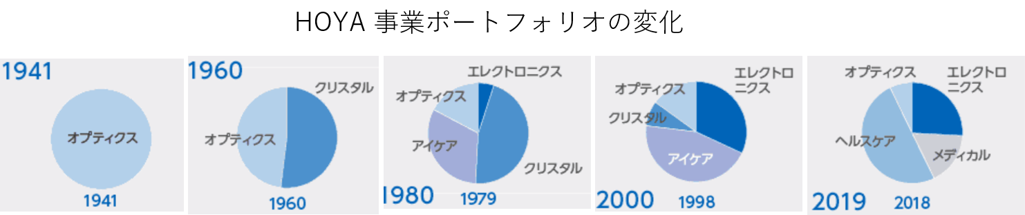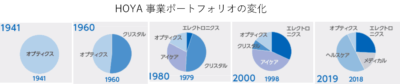 実際にHOYAの事業ポートフォリオは次のように入れ替わってきました。