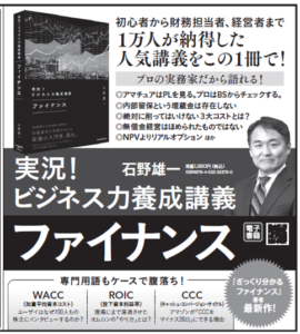 「実況! ビジネス力養成講義 ファイナンス」の広告が本日の日経新聞に掲載されました。おかげさまで早くも増刷です。有難うございます。皆さんの大切な友人や同僚・部下にもお薦めくださいますでしょうか。引き続きご愛顧のほど、よろしくお願いいたします。